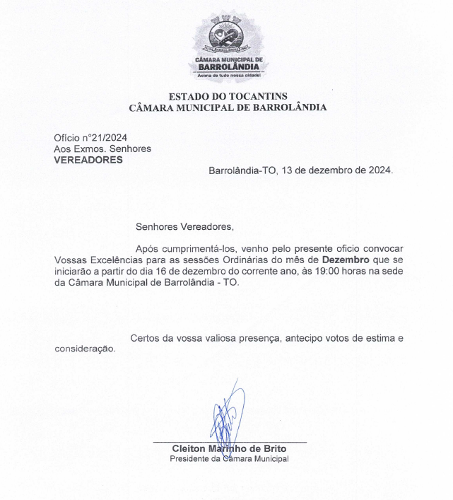 Poder Legislativo de Barrolândia - Estado do Tocantins