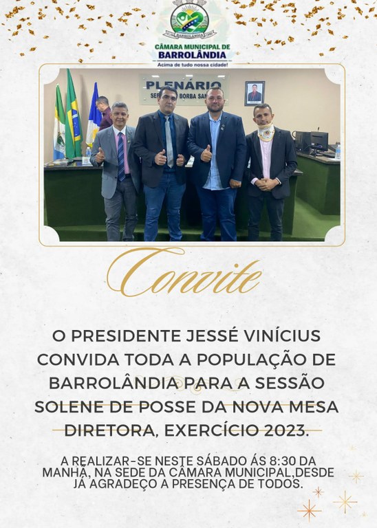 Convite para Sessão de Posse da Nova Mesa Diretora da Câmara Municipal