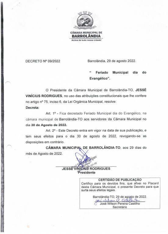 Poder Legislativo de Barrolândia - Estado do Tocantins